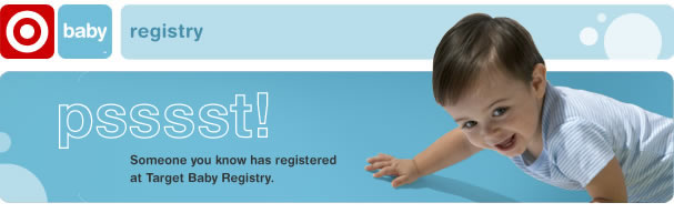 | Hello - We just wanted to let you know that we've registered with Target Baby at Target.com to get ready for our future arrival! You can take a look at our Registry online at http://www.target.com/gp/registry/babyreg.html or visit the Registry kiosk at any Target store! Best Wishes, Lindsay Christensen and Glenn Christensen |